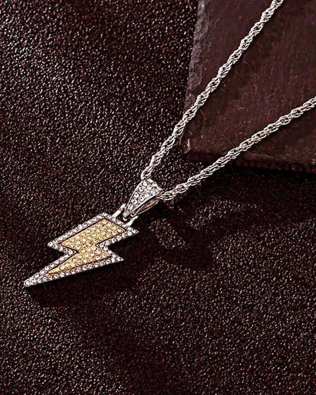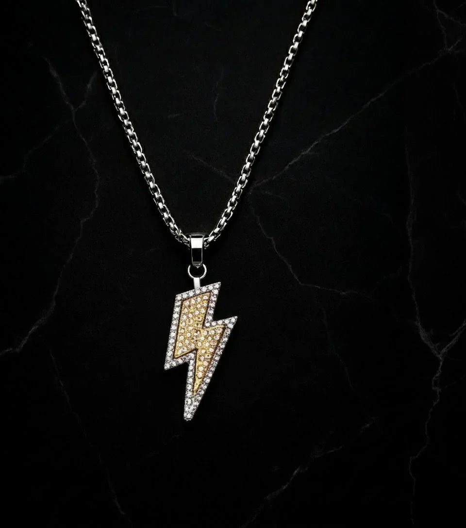 A modern lightning-shaped pendant with sharp, clean lines and an edgy yet elegant silhouette — ideal for men who appreciate bold, contemporary accessories.